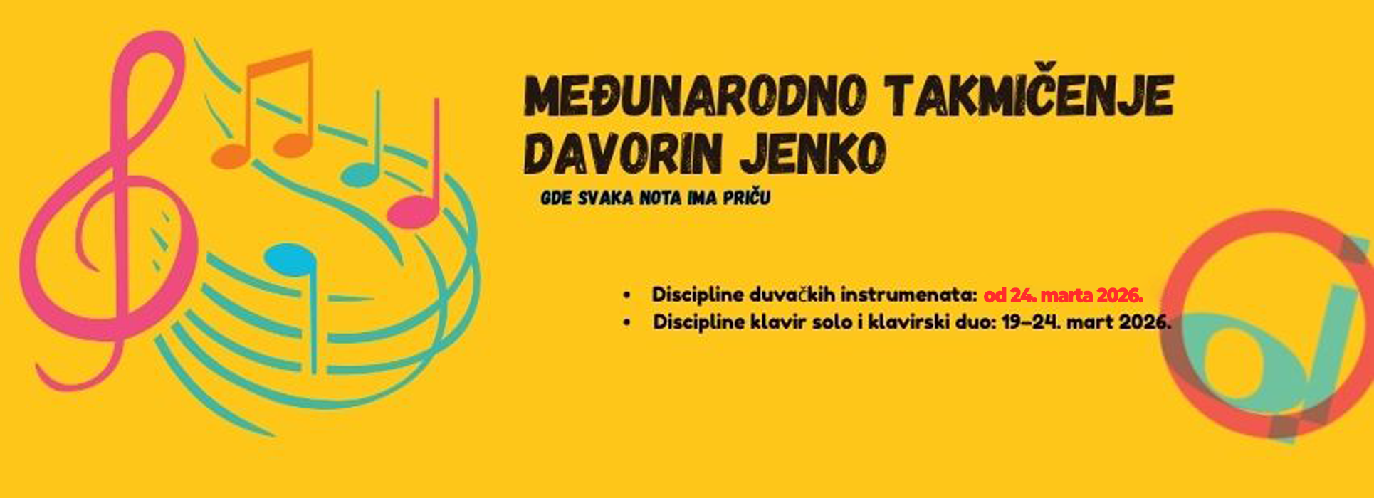 Takmičenje 2026. održava se od marta (duvački instrumenti) i u martu (klavir solo i duo).